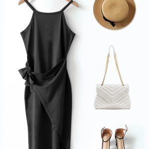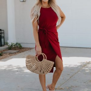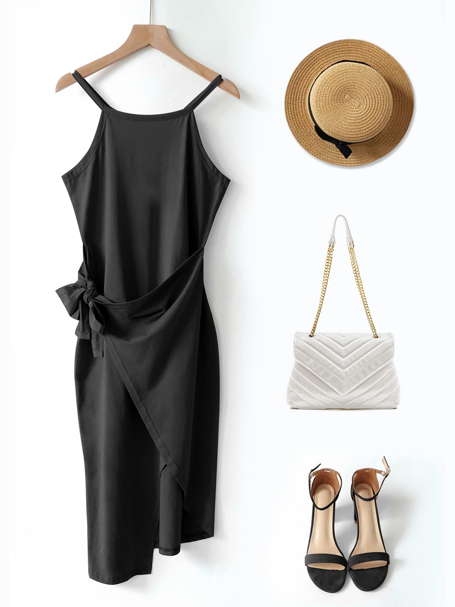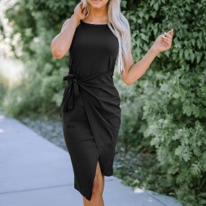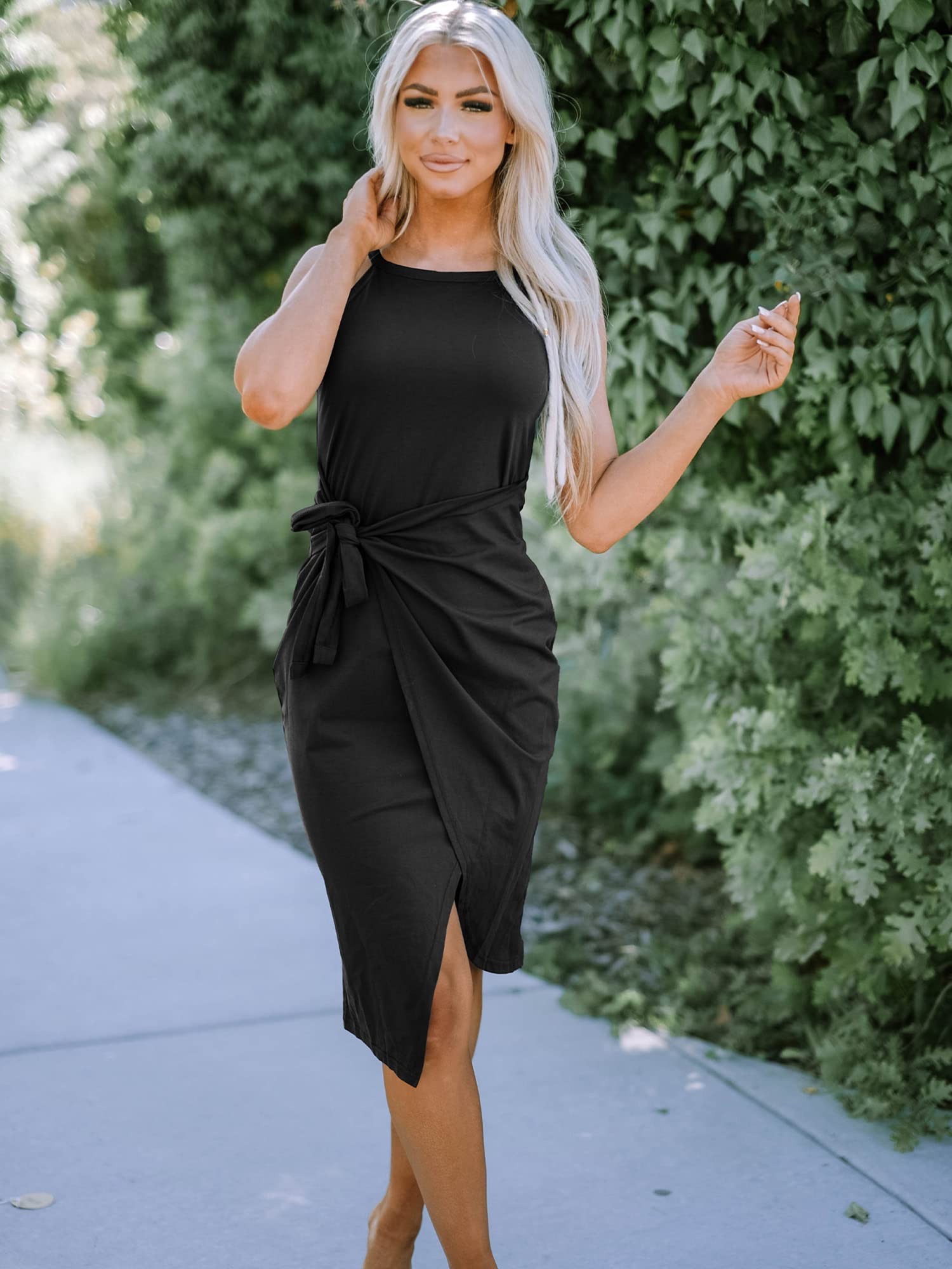 - Design: Sleeveless Halter Neck T Shirt Dress with Tie Waist Wrap Front