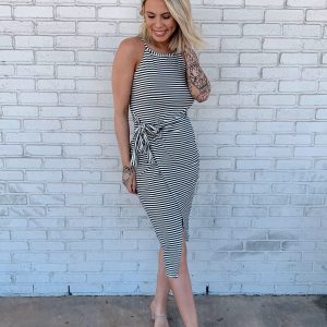 - 1 x Casual Sleeveless Striped Midi Dresses
