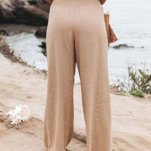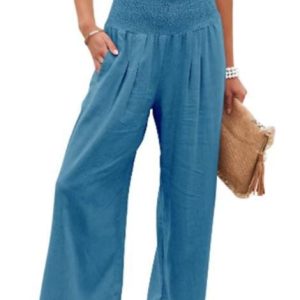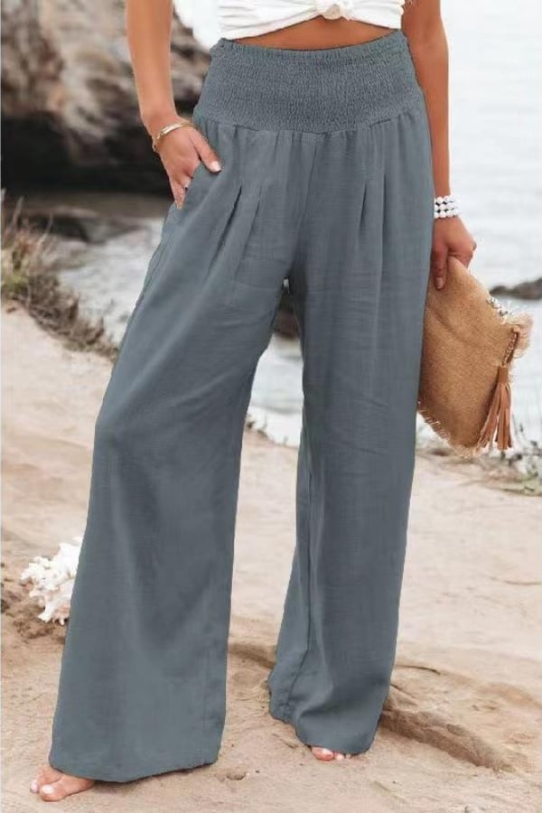 - Elastic Waist, Solid Color, Casual relaxed fit, Wide leg trousers
